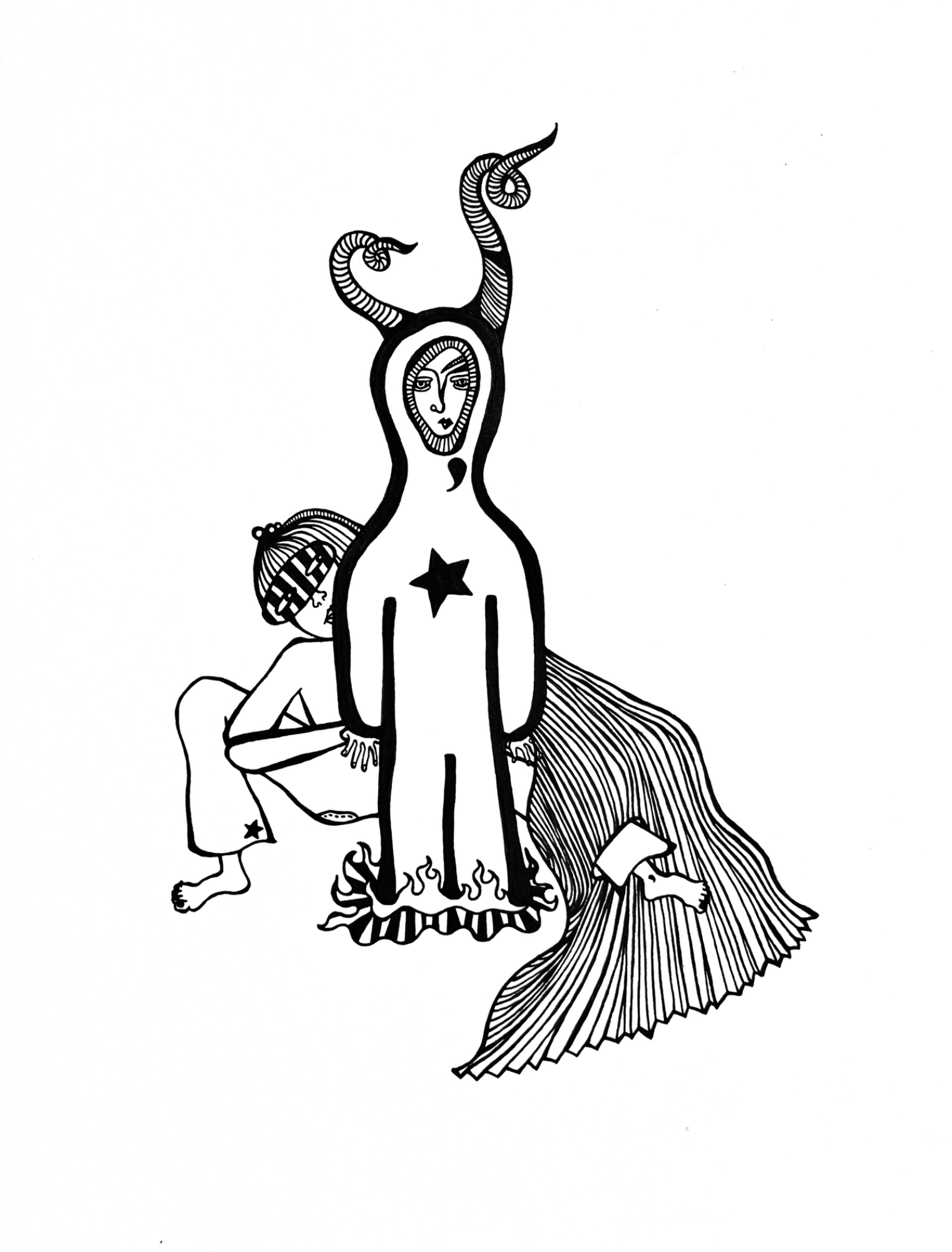 My work explores embodiment and the subconscious, illustrating and writing through somatic awareness and intuition. I am guided by an interest in the nature of self — in origin, becoming, collapse, and rebirth.
