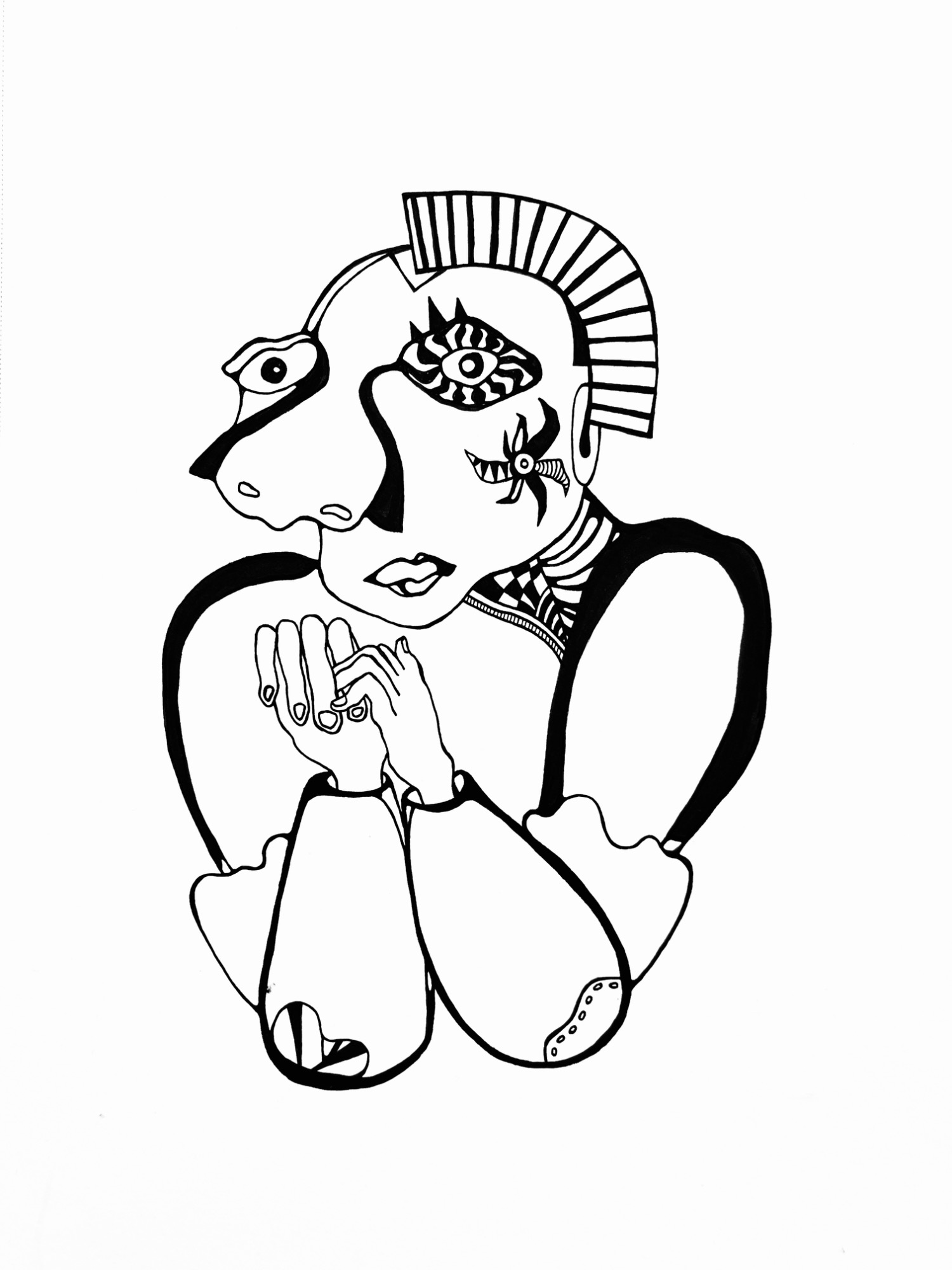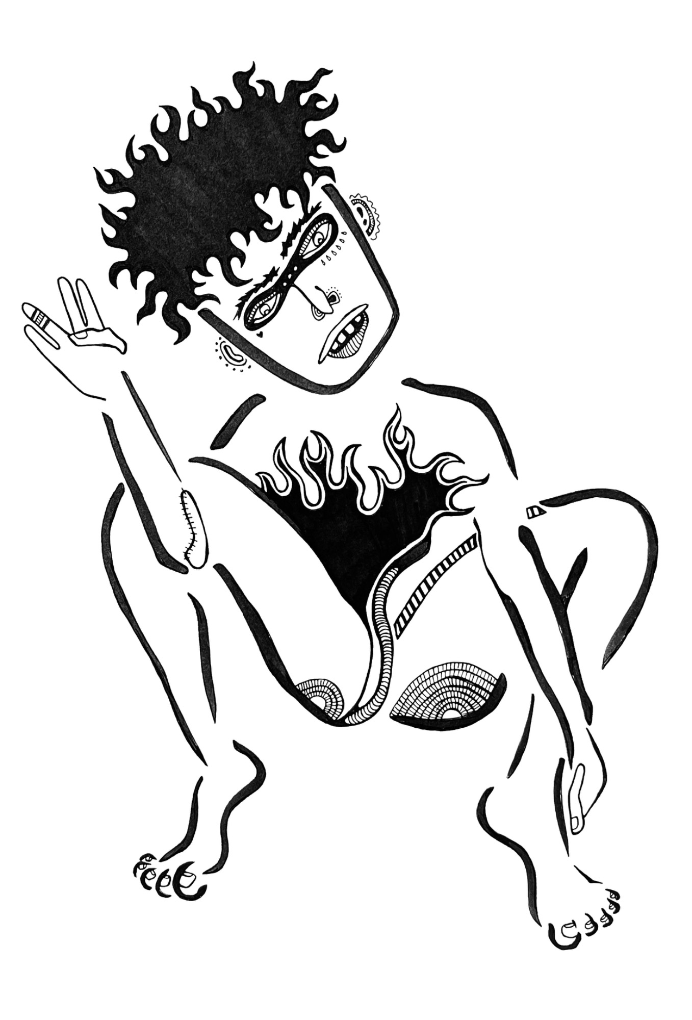 My illustrations consist of hand-rendered line work with black ink on paper. Select illustrations undergo subtle interventions through scanning, compositing, and digital manipulation. They are made in similar rhythm to my poetry, emerging initially as intuitive, thick strokes framing the subject(s), then woven together through precise “needlework.” Each line, word, shape, and subject is influenced by various stimuli in the space I am working in, be it the shape of a jazz tune, the gait of passersby, or the bulges of a nearby tree trunk.